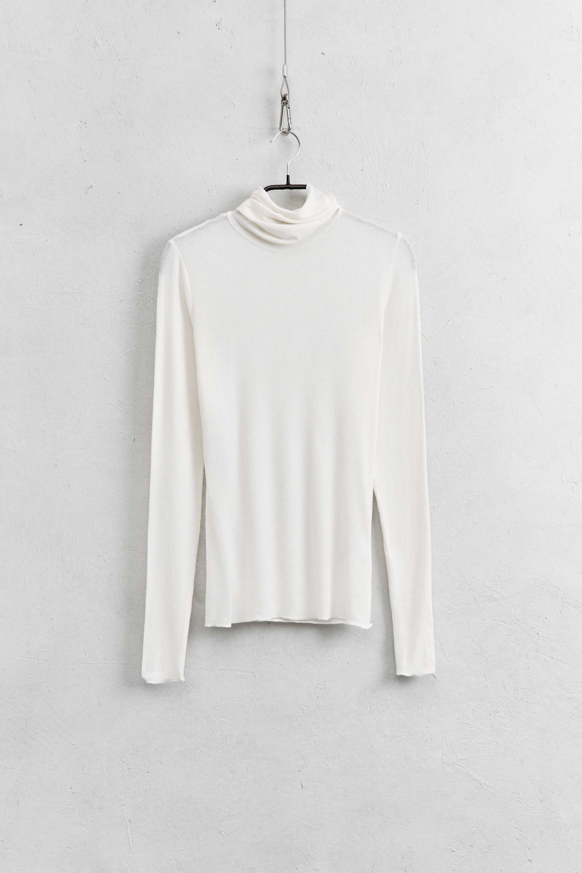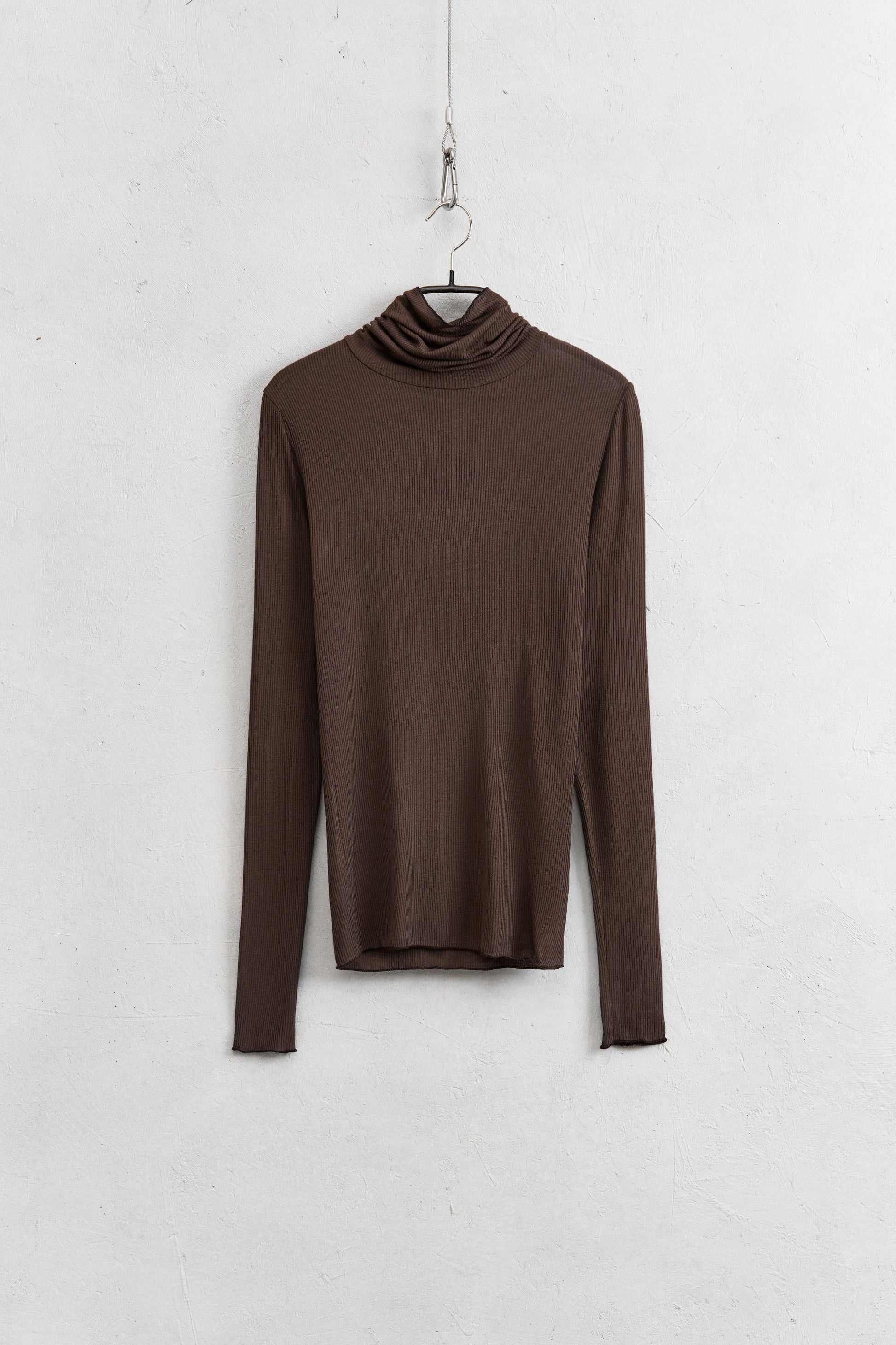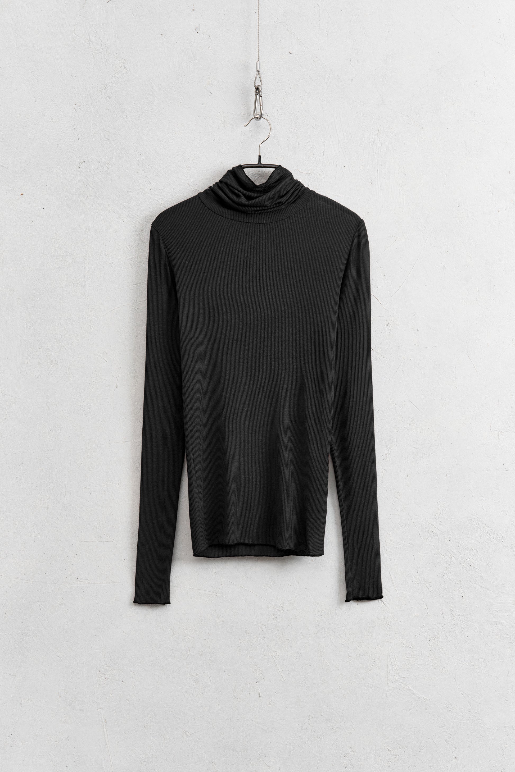 Top realizzato in misto viscosa.Tessuto a costine e collo alto.Vestibilità regolare