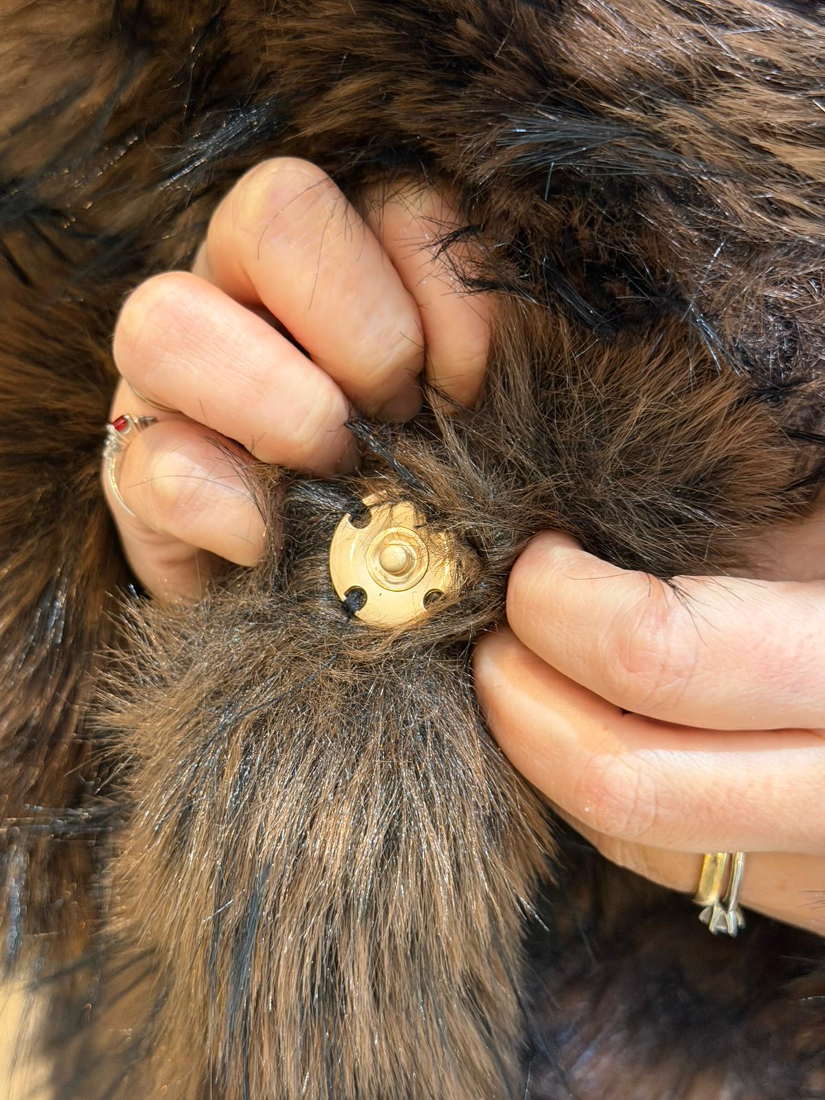 Eco-pelliccia brown, base marrone con sfumature nere, chiusura a doppio bottone