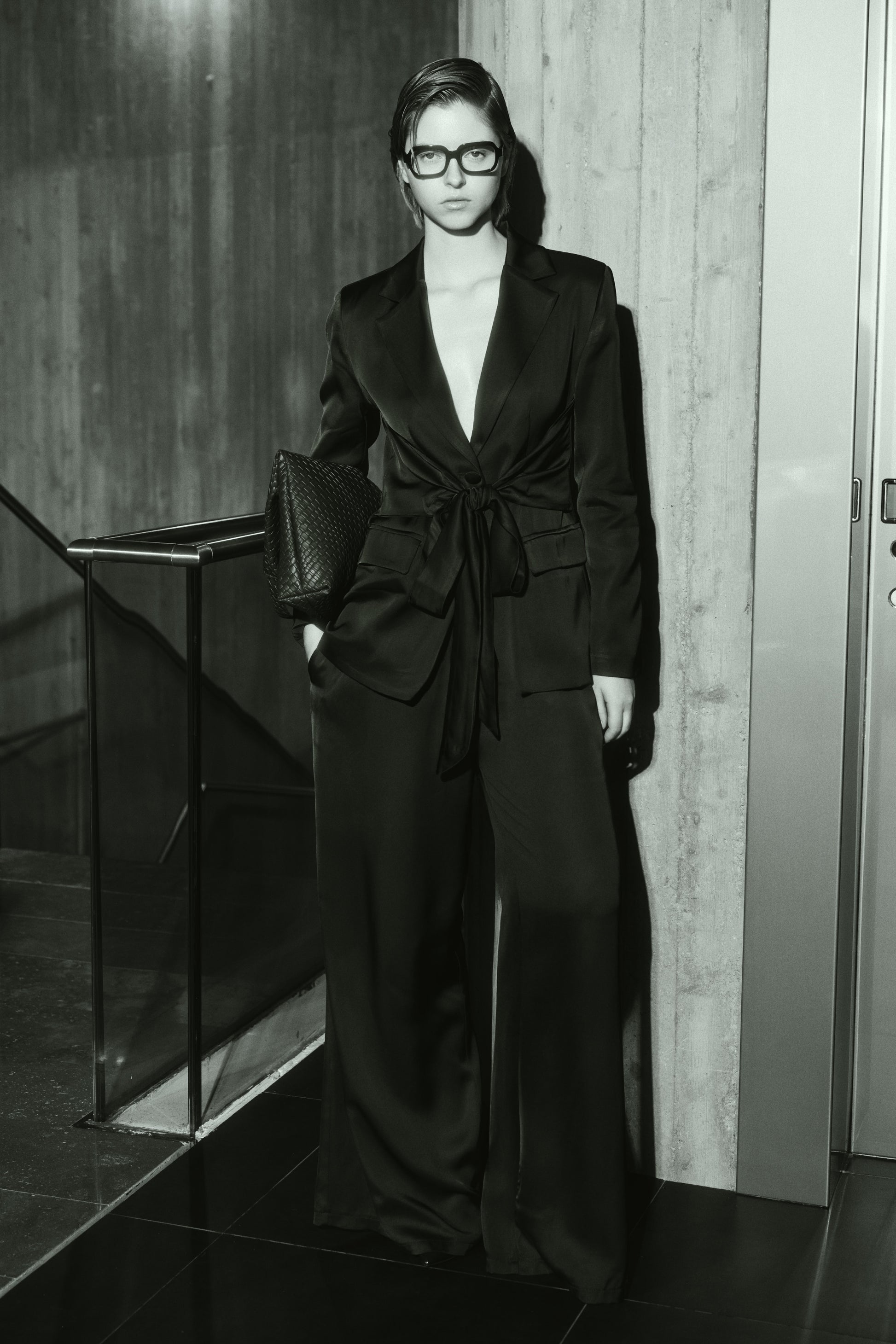 Blazer satinato con cintura in vita