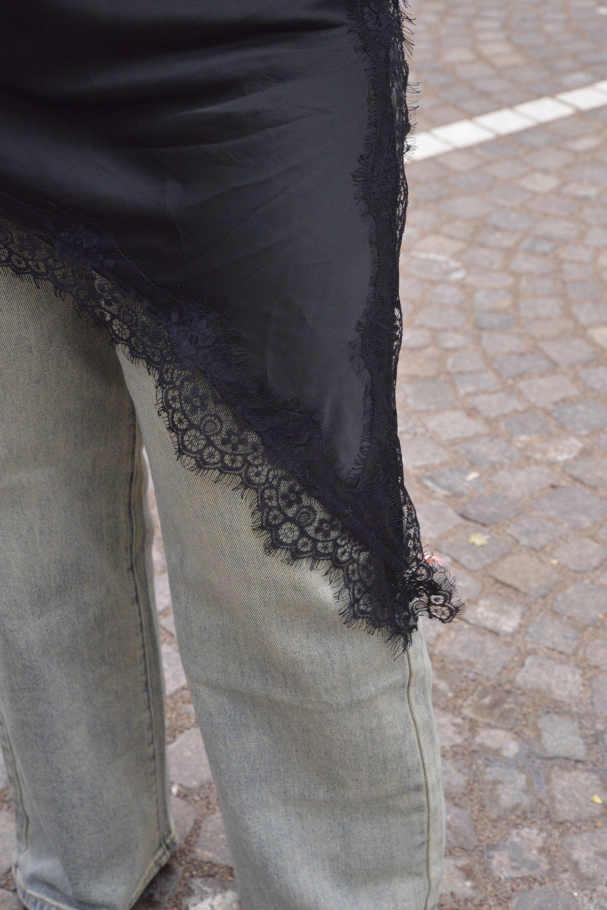 TOP IN VISCOSA CON INSERTI IN PIZZO, TAGLIO SVASATO